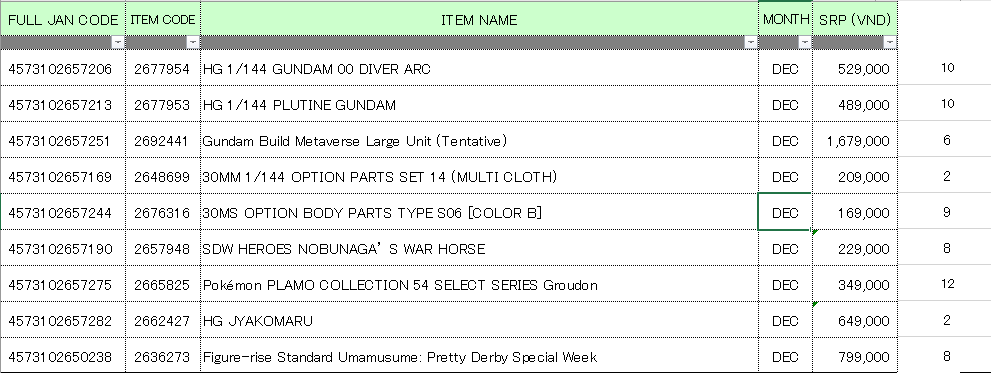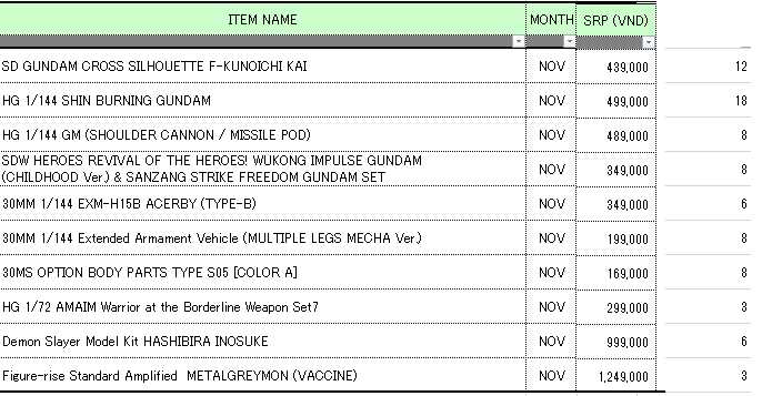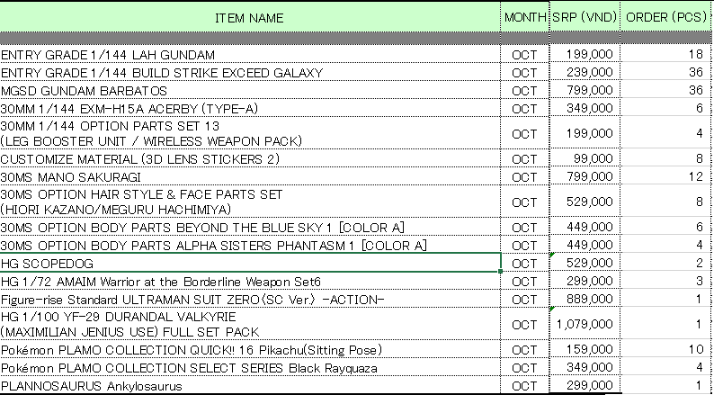 Pre Order mô hình Bandai Tháng 10-11-12/2023